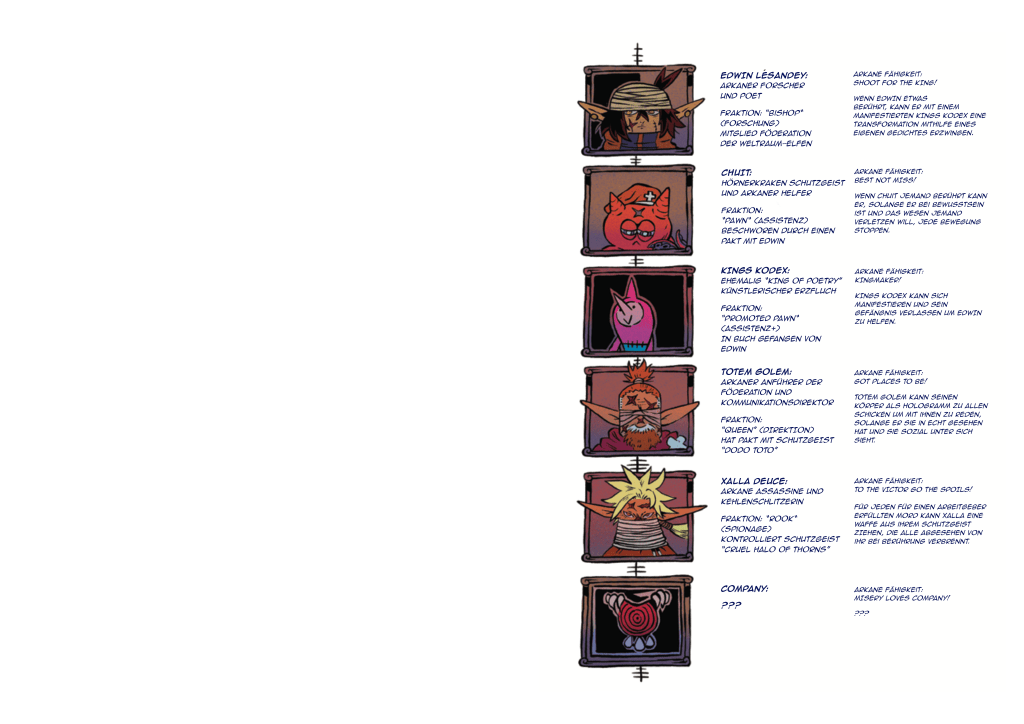Hunter x Hunter (1998) von Yoshihiro Togashi, den ich in meinem Rom-Urlaub in Ruhezeiten lesen konnte, von bestimmender Bedeutung sein. Die logische Artikulation von einem unterliegenden Magie-System sollte mich maßgeblich inspirieren und motivieren.