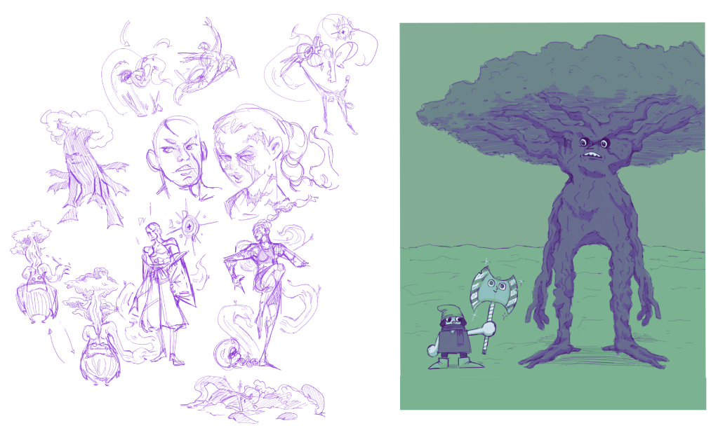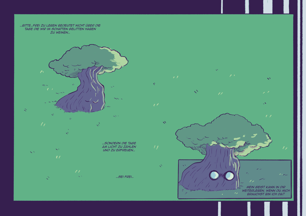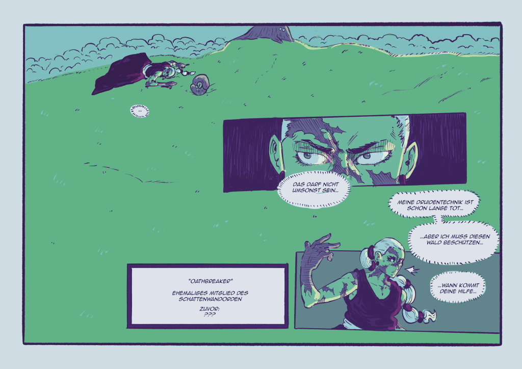 Als komplette Überarbeitung meines ersten Projektes dient mein Animations-Kurzfilm „Die Ballade vom Wüstenbaum“ aus dem Filmprojekt „In meinem Kopf gehe ich barfuß über Glut“ von Peter Bösenberg als Hauptinspiration für meinen neuen Comic „OATHBREAKER“.