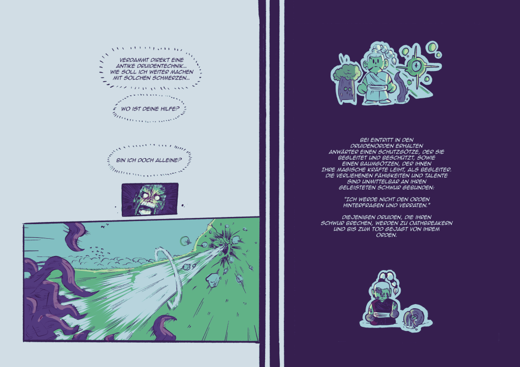 Die Geschichte beschreibt einen gebrochenen Schwur und der sich daraus ergebenen Konsequenzen. Ein actiongeladener Comic adaptiert den Wüstenbaum in einem Holzgötzen, der eine fundamentale Entscheidung trifft. Der Comic soll als erster Versuch dienen, eine noch größere Geschichte innerhalb der Druidenwelt zu entwickeln.