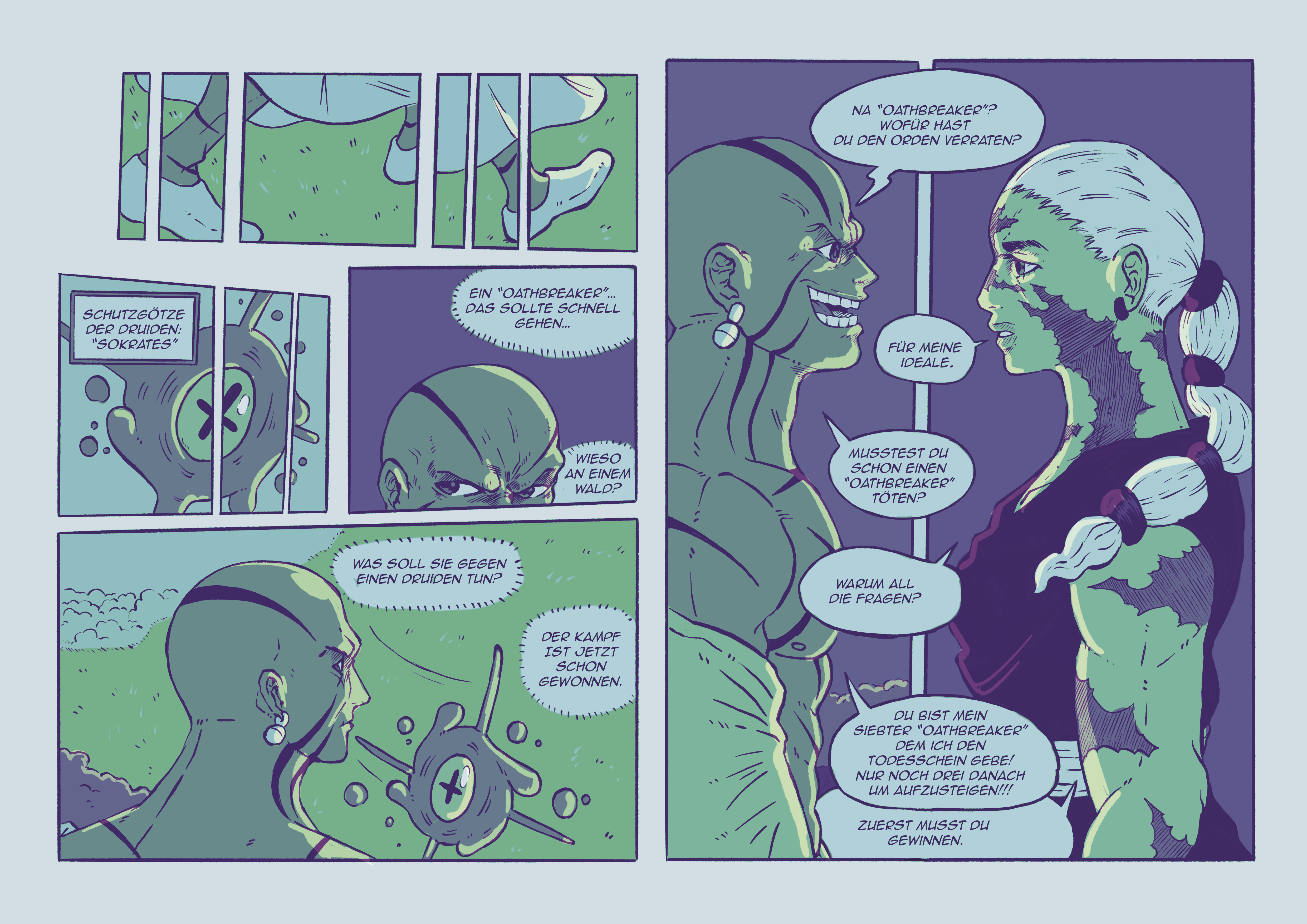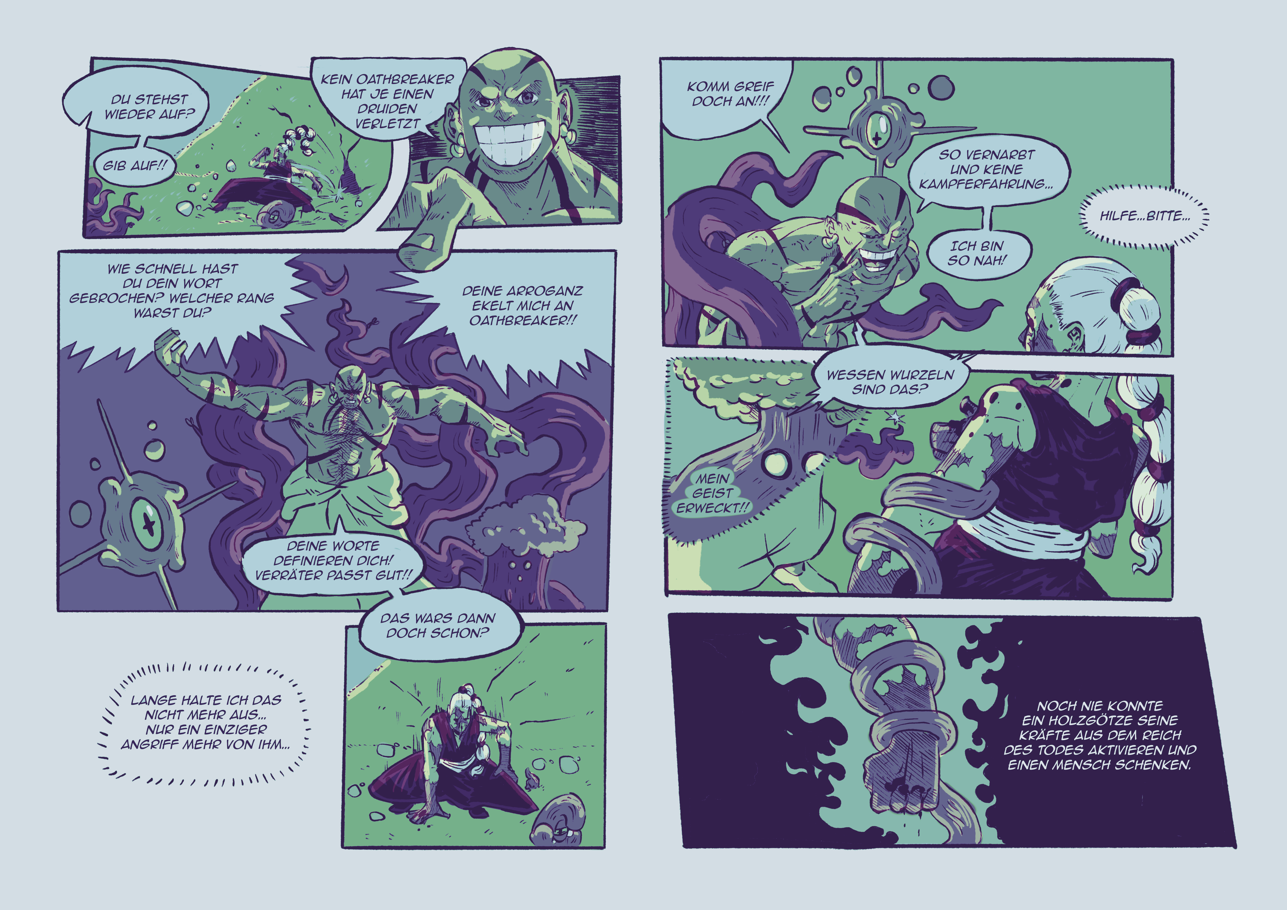 Als komplette Überarbeitung meines ersten Projektes dient mein Animations-Kurzfilm „Die Ballade vom Wüstenbaum“ aus dem Filmprojekt „In meinem Kopf gehe ich barfuß über Glut“ von Peter Bösenberg als Hauptinspiration für meinen neuen Comic „OATHBREAKER“.