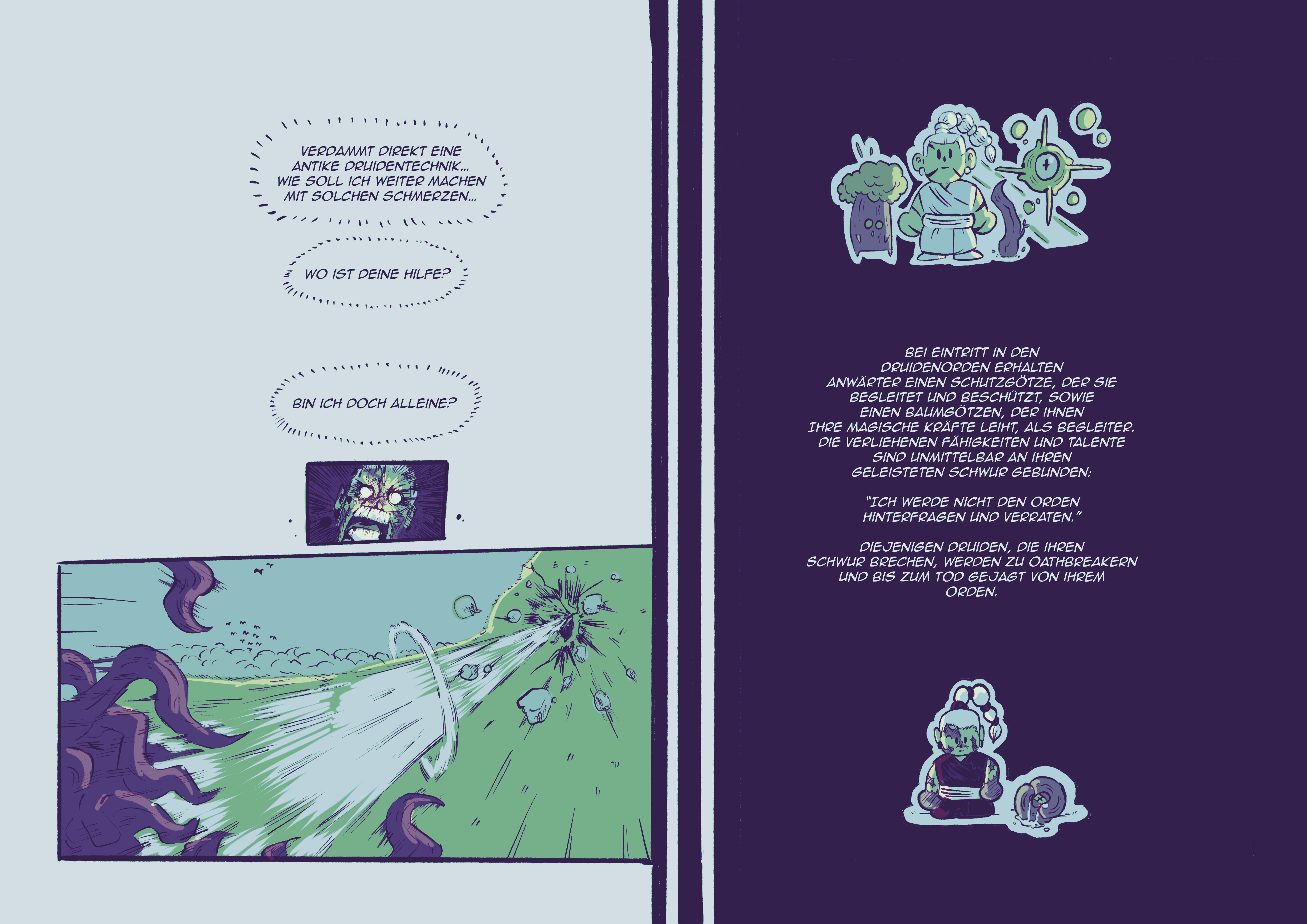 Die Geschichte beschreibt einen gebrochenen Schwur und der sich daraus ergebenen Konsequenzen. Ein actiongeladener Comic adaptiert den Wüstenbaum in einem Holzgötzen, der eine fundamentale Entscheidung trifft. Der Comic soll als erster Versuch dienen, eine noch größere Geschichte innerhalb der Druidenwelt zu entwickeln.