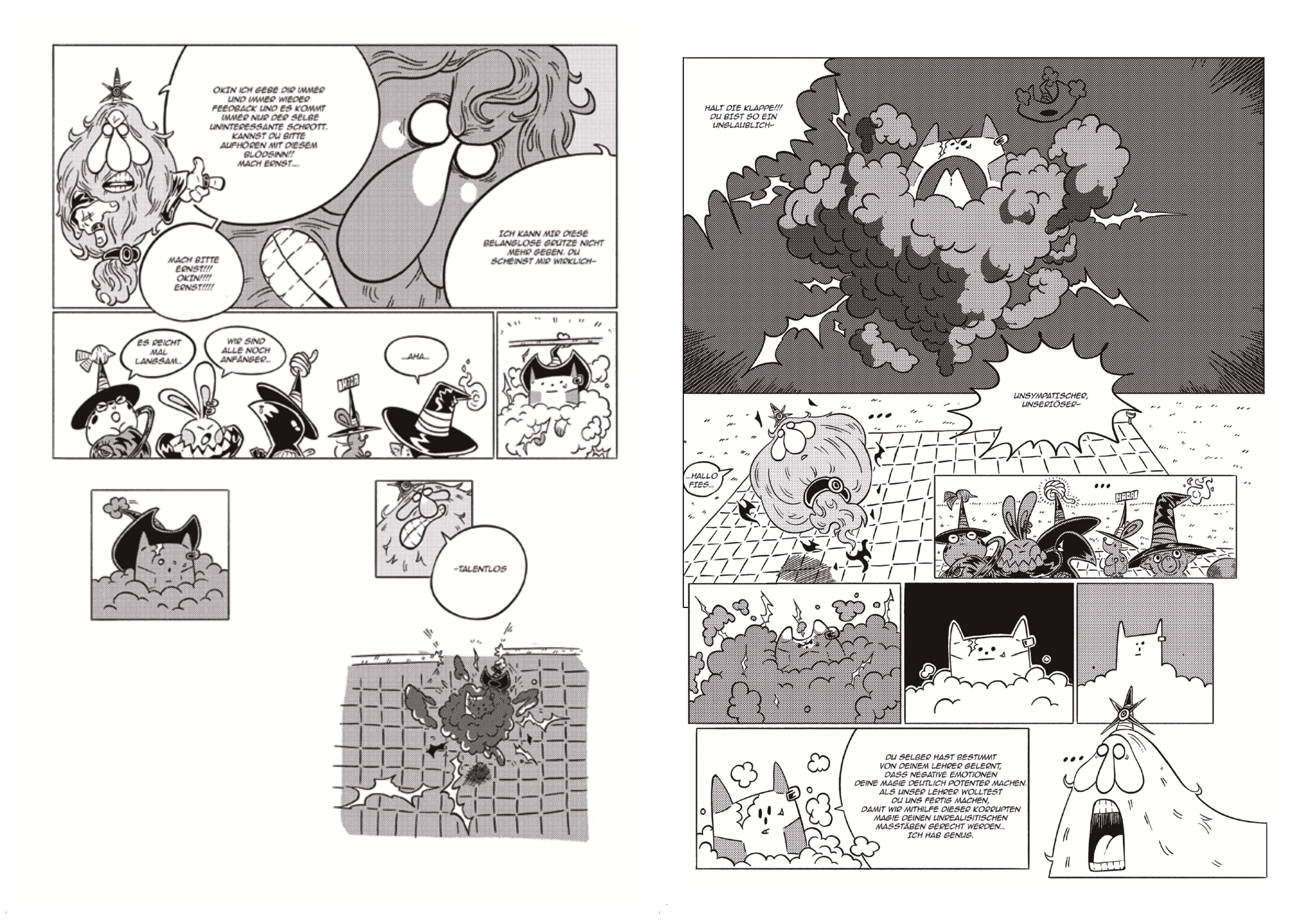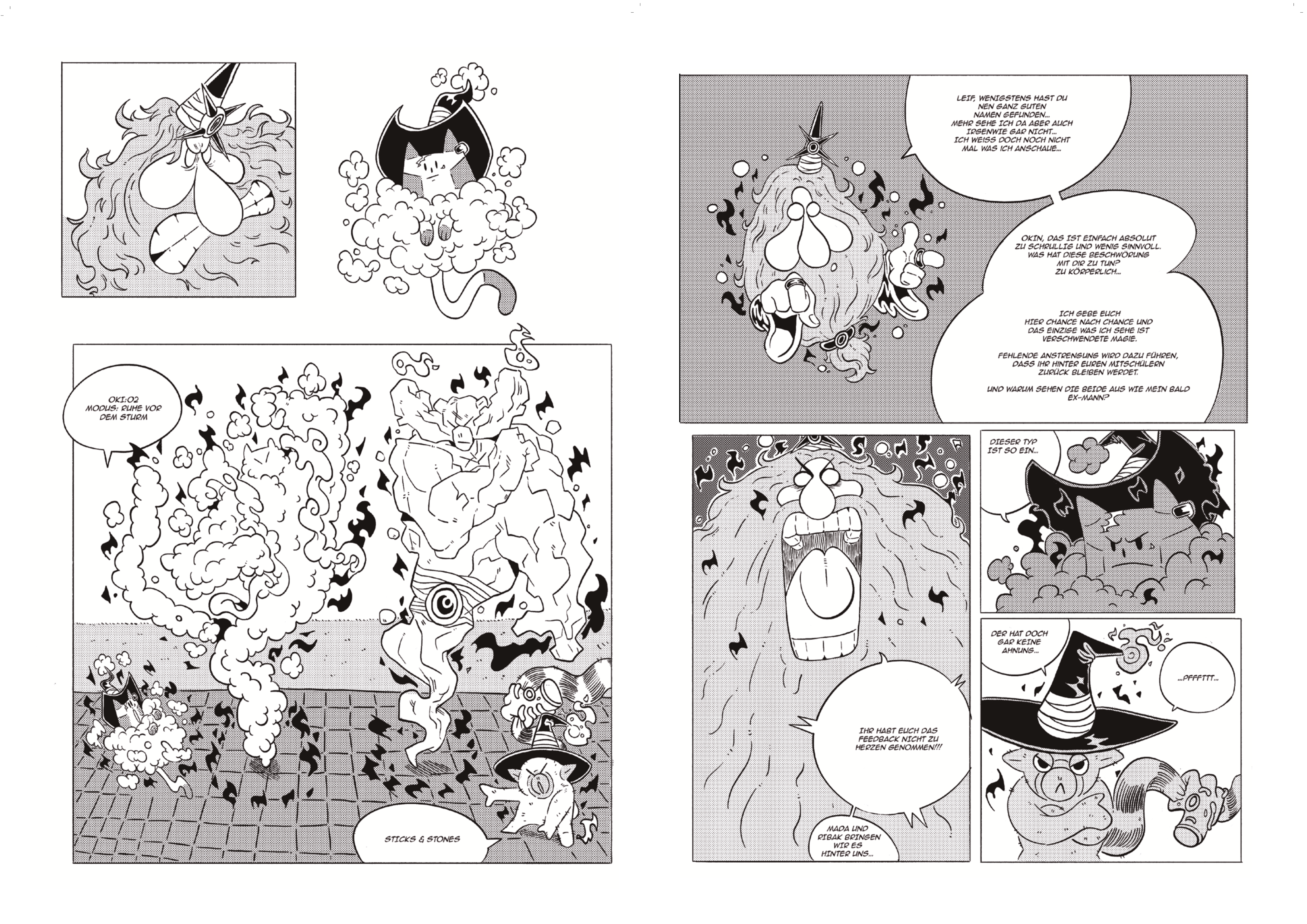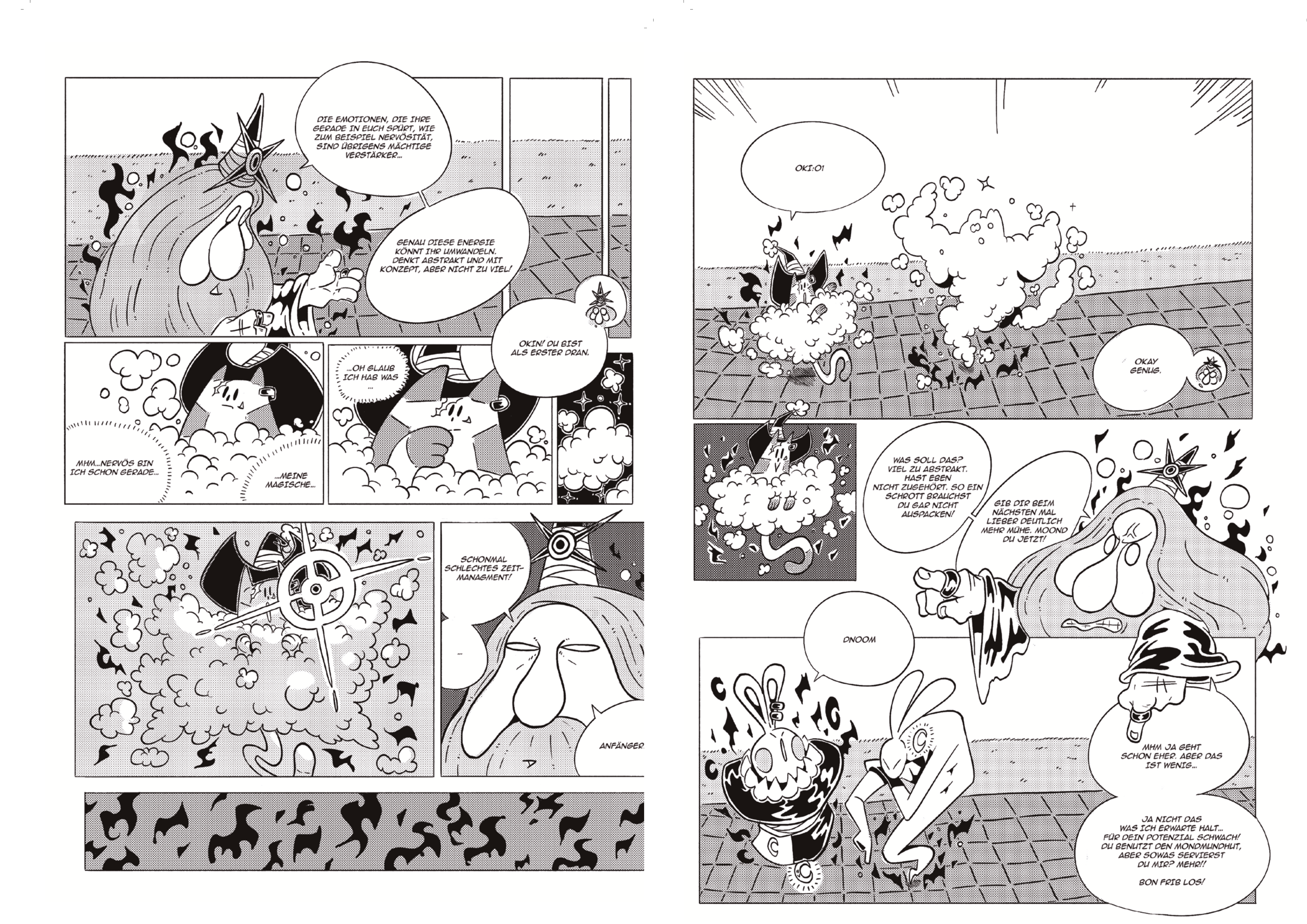 Was zunächst ein spannendes Erlebnis zu sein scheint, wird jedoch schnell zu einem schrecklichen Chaos. Dudelbert entpuppt sich als Autoritätsperson und lässt den eigenen aufgestauten Kummer an den Beschwörungsversuchen seiner Schüler aus. Sein Feedback ist so destruktiv, dass Okin aus Frust immer und immer wütender wird.