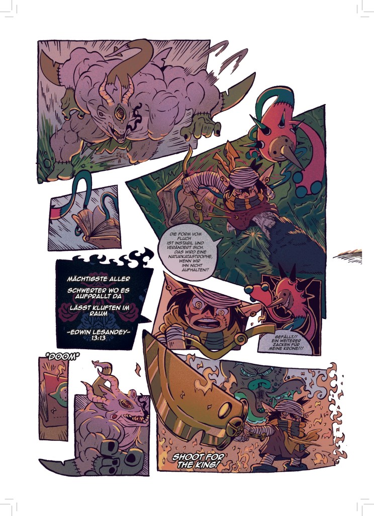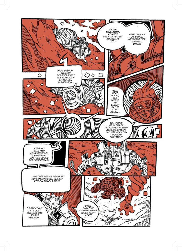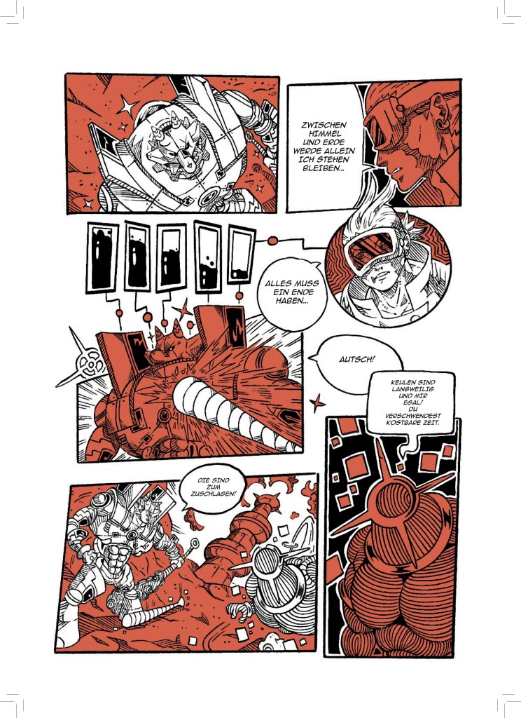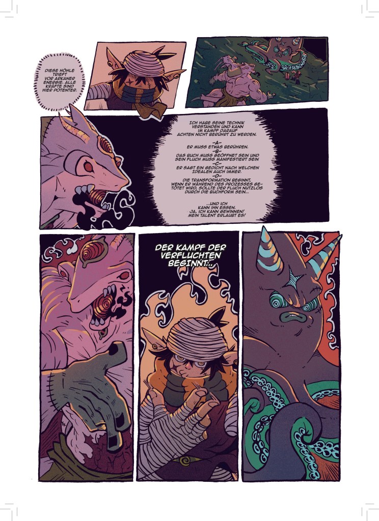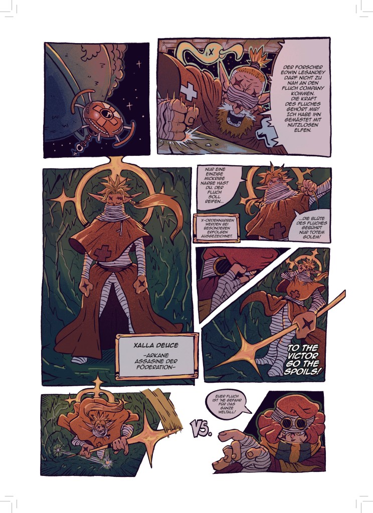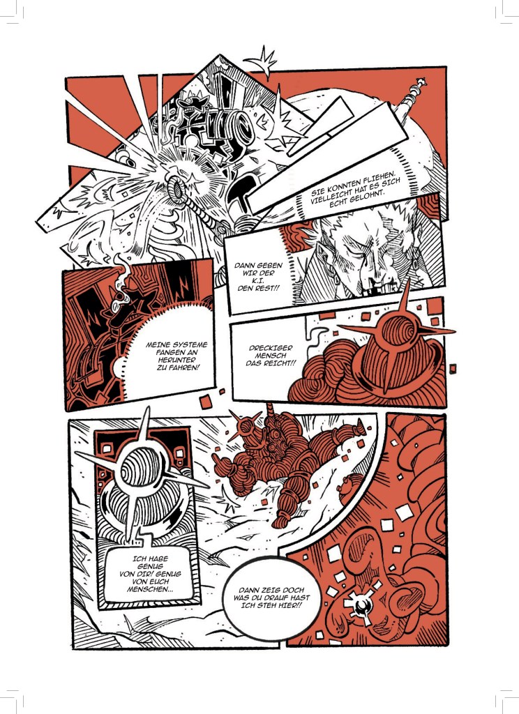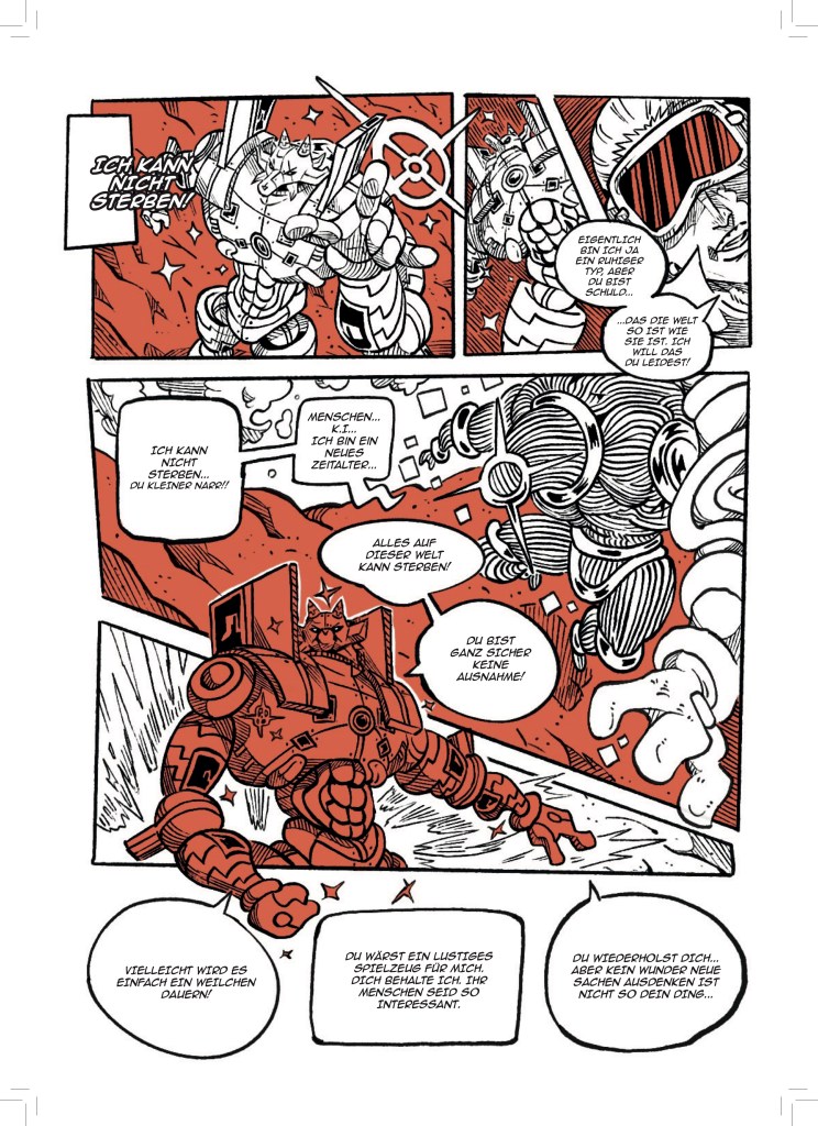 Jetzt, wo aber dieser dicke Sammelband entstanden ist, bin ich sehr stolz darauf meine Fertigkeit in der Kunst des Comiczeichnens stetig weiterentwickelt und viele verschiedene Stile und Genres erforscht und illustriert zu haben.