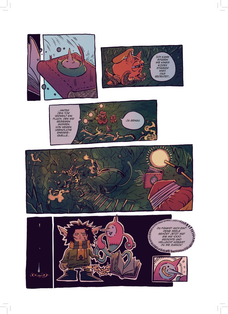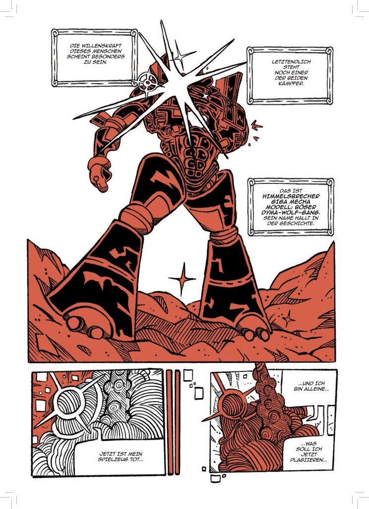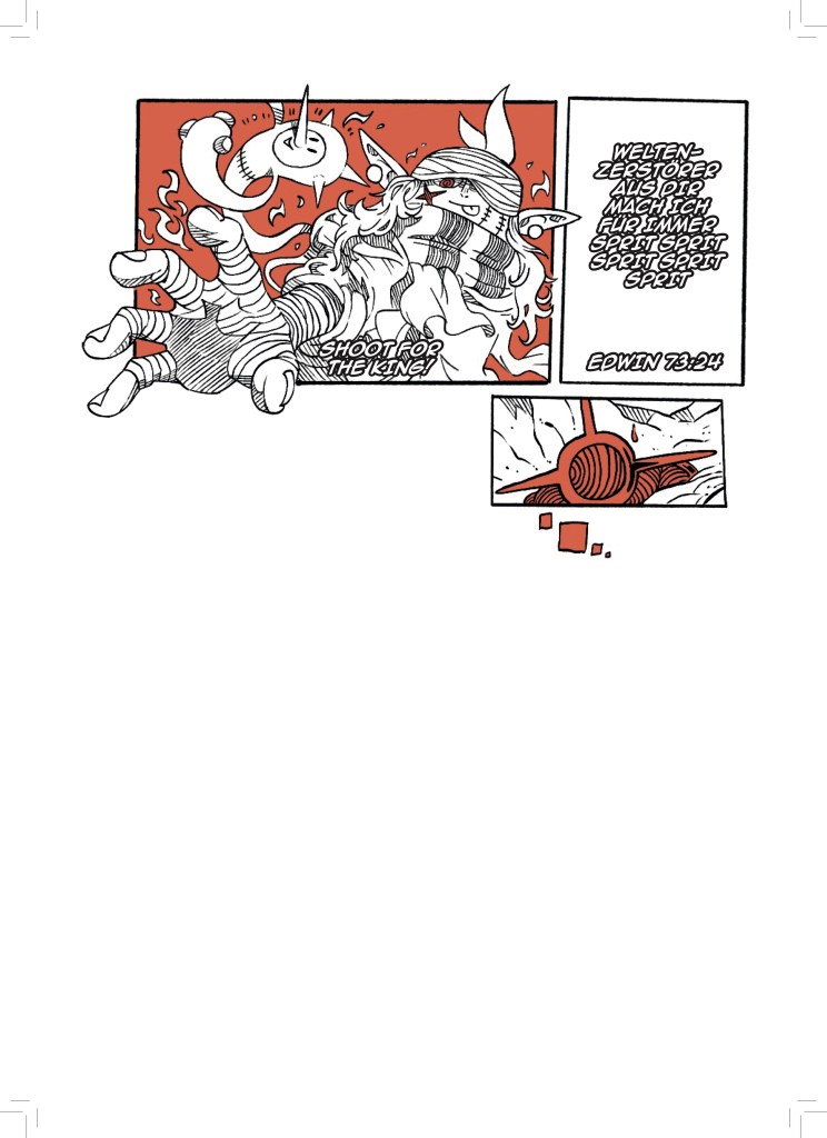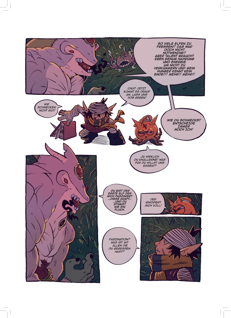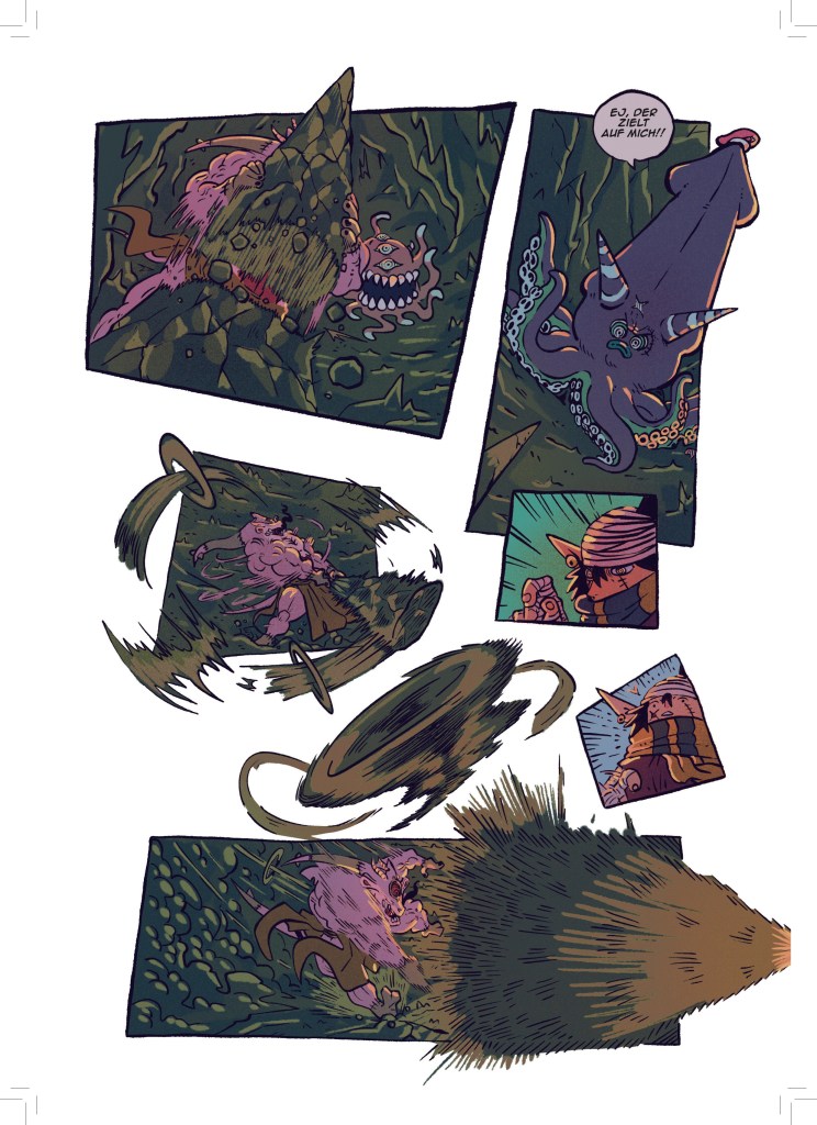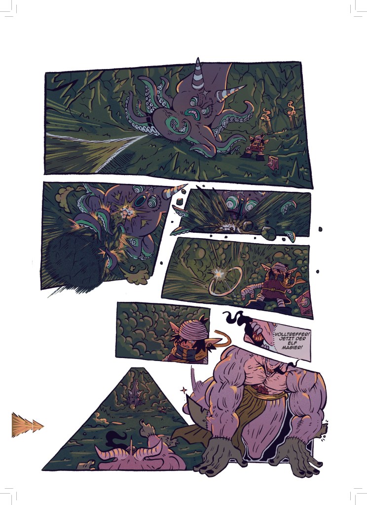 Jetzt, wo aber dieser dicke Sammelband entstanden ist, bin ich sehr stolz darauf meine Fertigkeit in der Kunst des Comiczeichnens stetig weiterentwickelt und viele verschiedene Stile und Genres erforscht und illustriert zu haben.