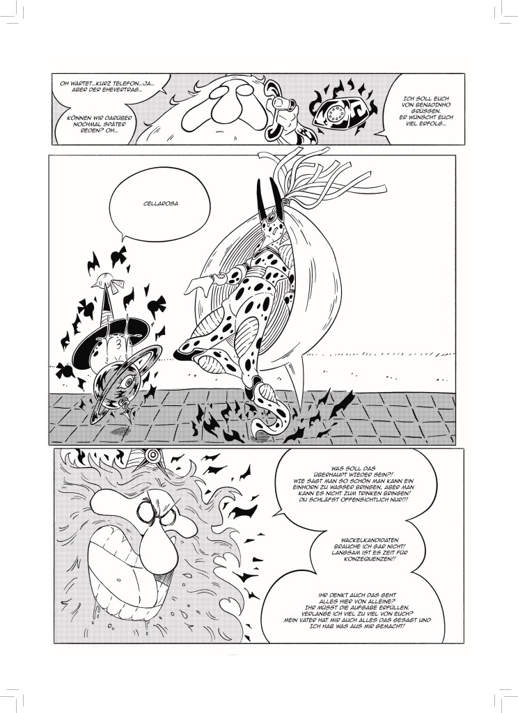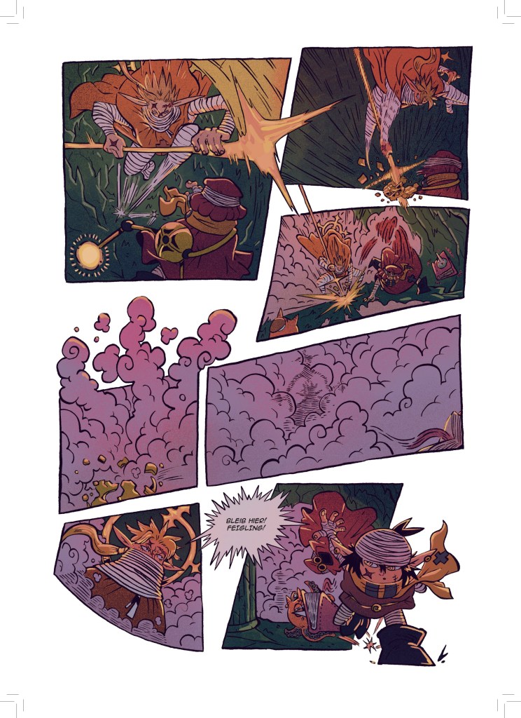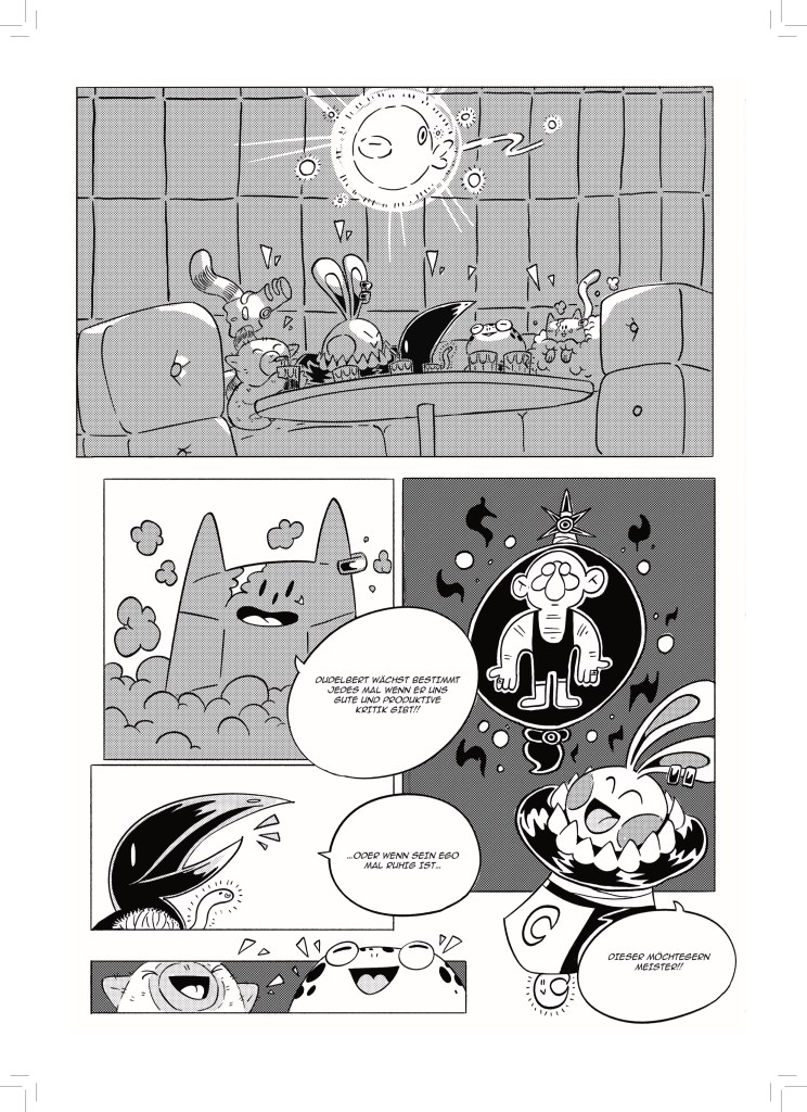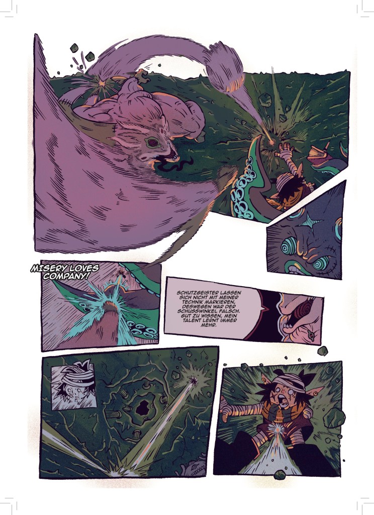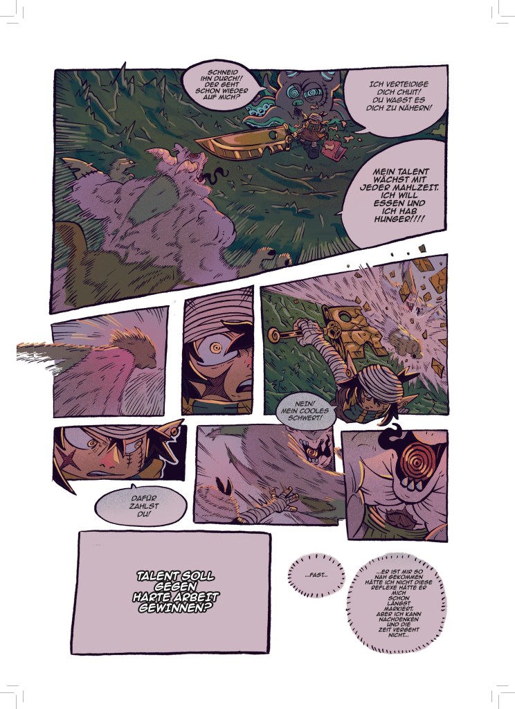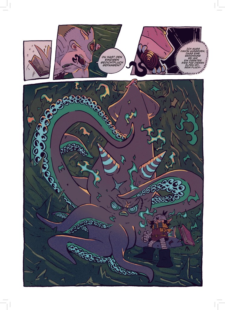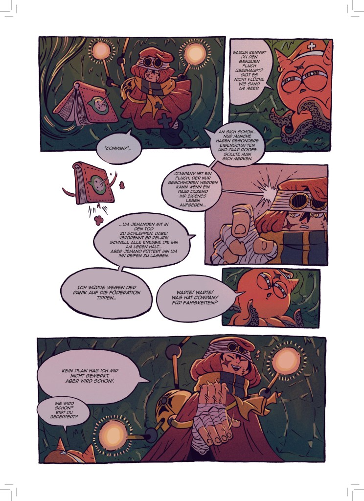 Jetzt, wo aber dieser dicke Sammelband entstanden ist, bin ich sehr stolz darauf meine Fertigkeit in der Kunst des Comiczeichnens stetig weiterentwickelt und viele verschiedene Stile und Genres erforscht und illustriert zu haben.